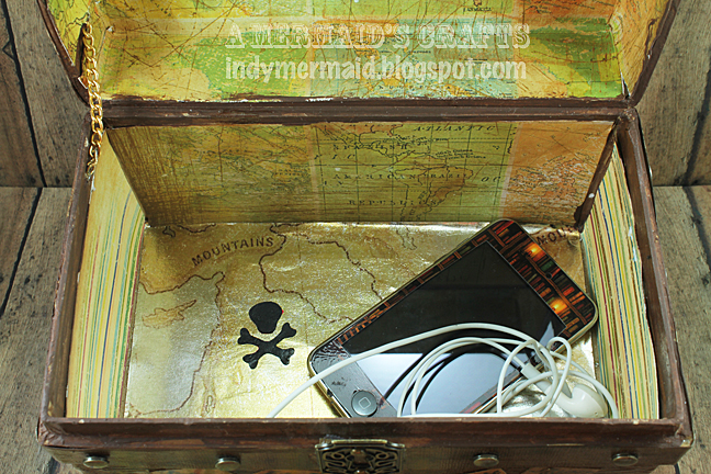 I don't even have words for how amazing this is! It looks like a real treasure chest! And I love the way you even covered the inside with the map paper . . . and the false bottom. AWESOME!!!!